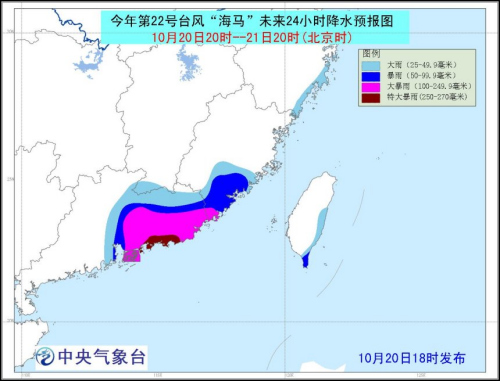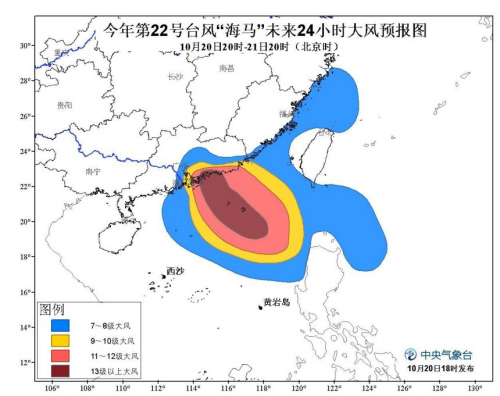 电 据主旨天气台讯息中新网10月20日,时揭晓台风赤色预警主旨天气台即日18。)下昼5点钟位于广东省深圳市东南方约莫570公里的海面上本年第22号台风“海马”(强台风级)的中央即日(20日,、东经118.3度便是北纬19.3度,14级(42米/秒)中央左近最大风力有,为955百帕中央最低气压,20~380公里七级风圈半径为3,40~160公里十级风圈半径为1,径为100公里十二级风圈半。