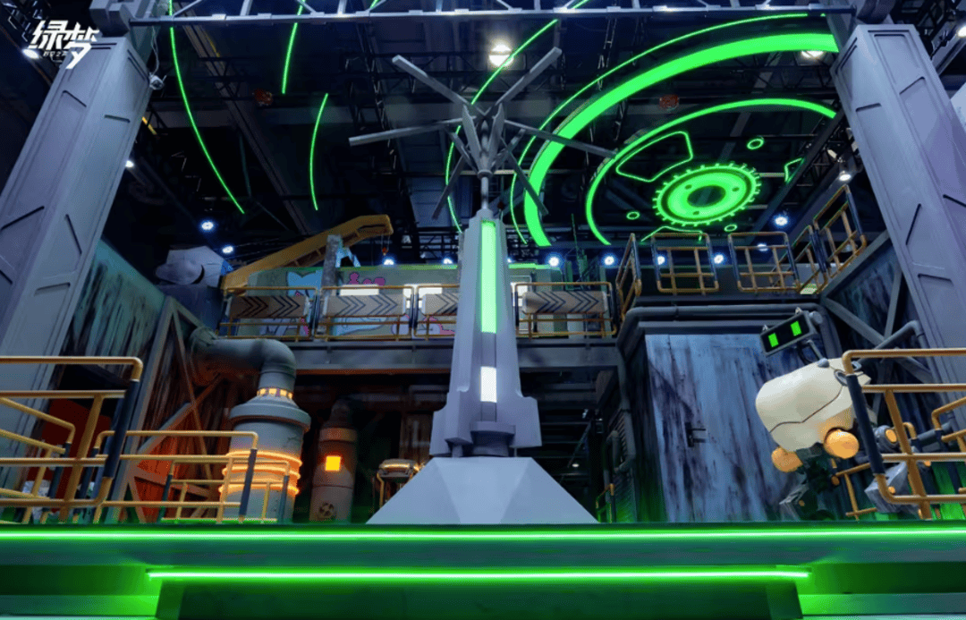 火虫漫展本届萤,来现场最具末日科幻美感的置景《绿梦:时空之声》为观多带,人类文雅为主题策画理念展台以体现后灾难时间的,朋克与废土美学造型协调工业,——半空中呼啸而过的有轨电车涌现出极具辨识度的视觉格调,械框架机闭复古的机,道齿轮与发光后道搭配锈蚀钢板、管,强运转的工业基地气氛营造出季世都会中顽。景目标丰盛展台满堂布,”这一观点具象化将“废墟中的希冀,可感的游戏宇宙入口为玩家构修出实正在。