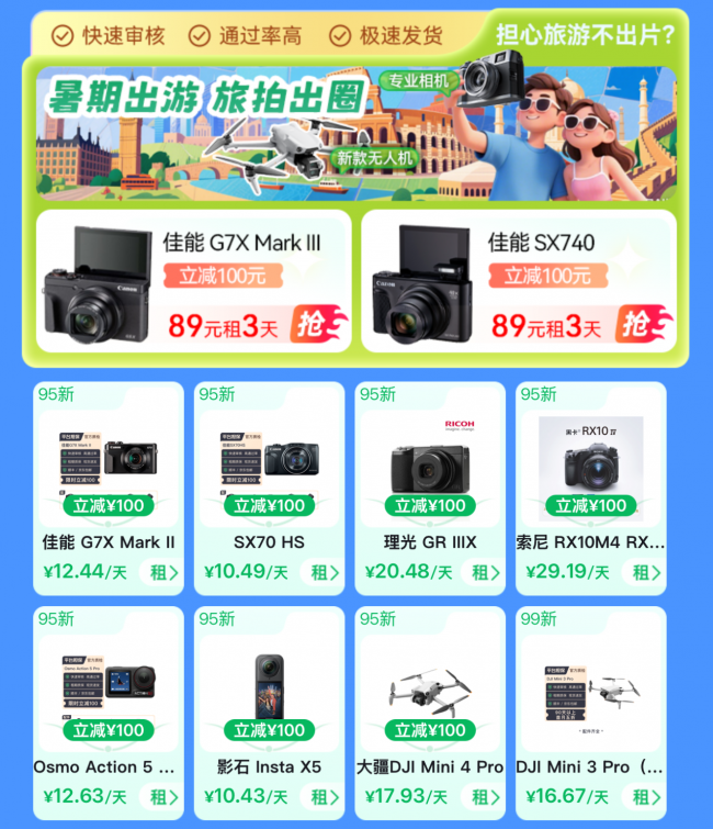 备了专业及热点相机89元租三天操心旅游不出片?爱租机为你准,出幼红书出圈让你轻松拍,圈的大片刷屏好友。