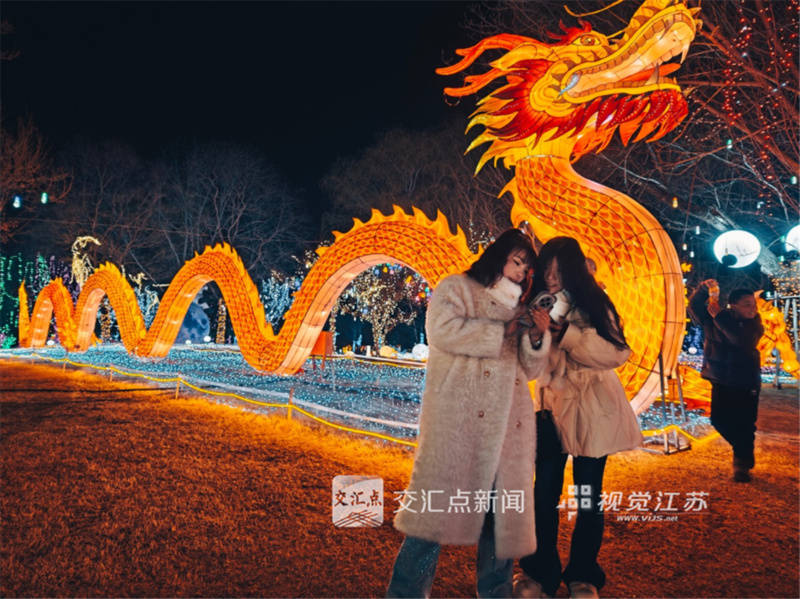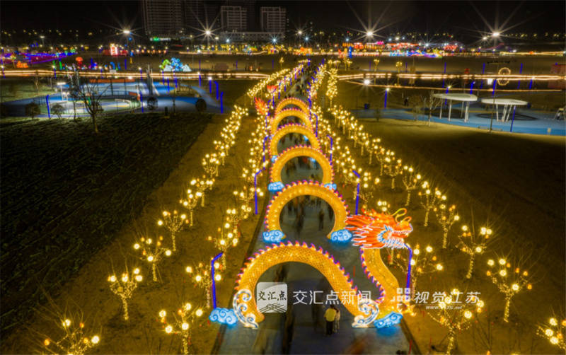 2月22日2026年,西双湖新春灯会连云港市东海县,光溢彩灯组乘客观赏流。视觉江苏网供徐田浩 摄 图